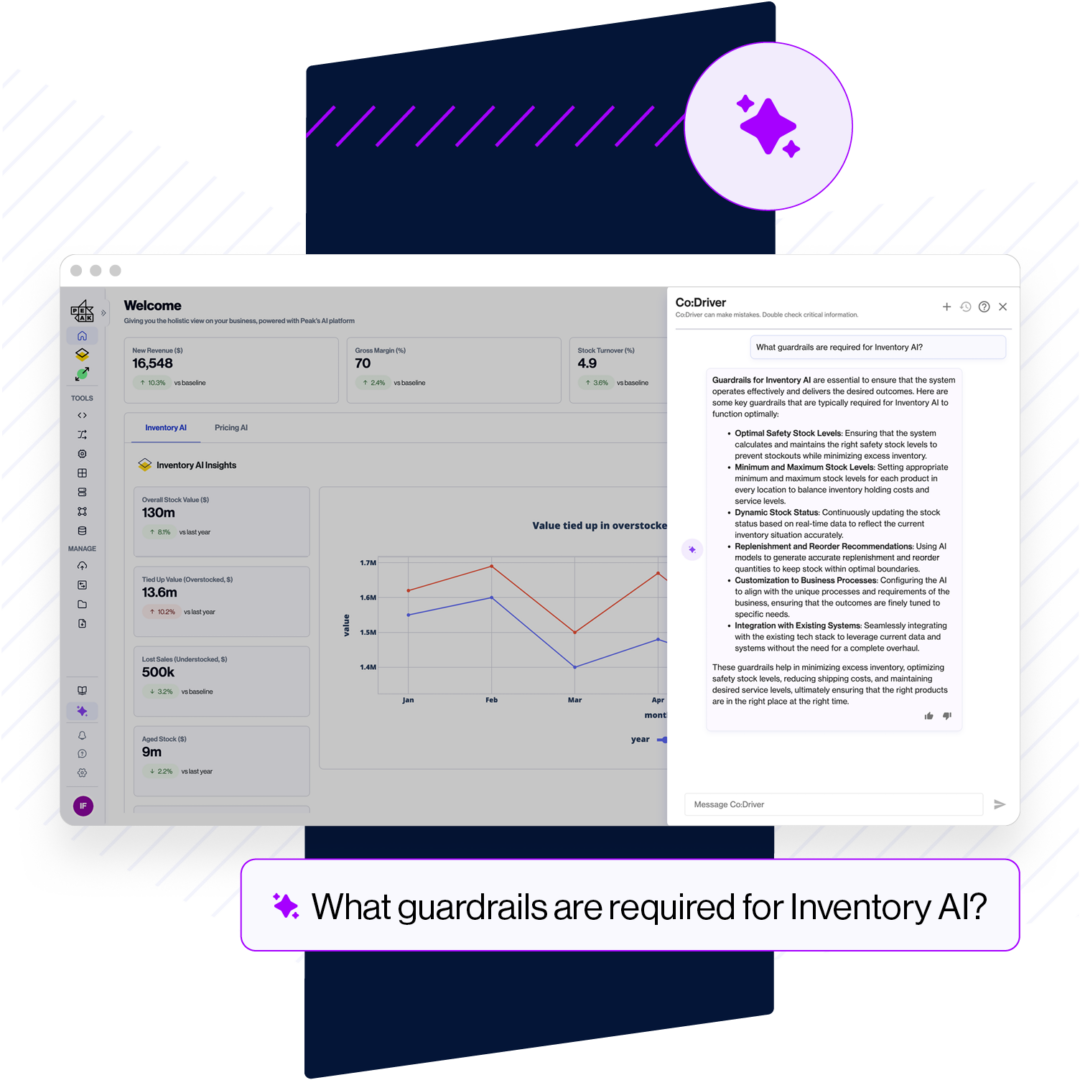 Using agentic workflows, Co:Driver™ surfaces business-specific information to you in seconds, increasing your speed to knowledge and supercharging decision making. Co:Driver™ will give you real-time support to help you get the most out of Peak, allowing you to troubleshoot and gain product clarity instantly.