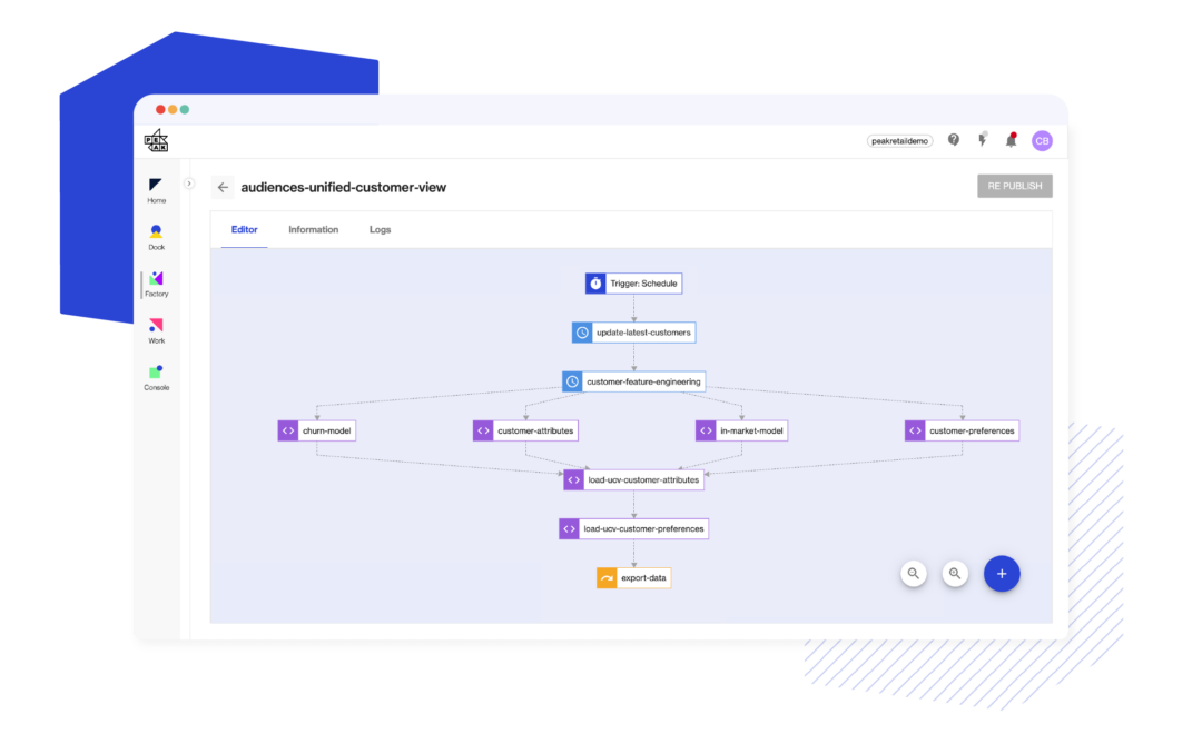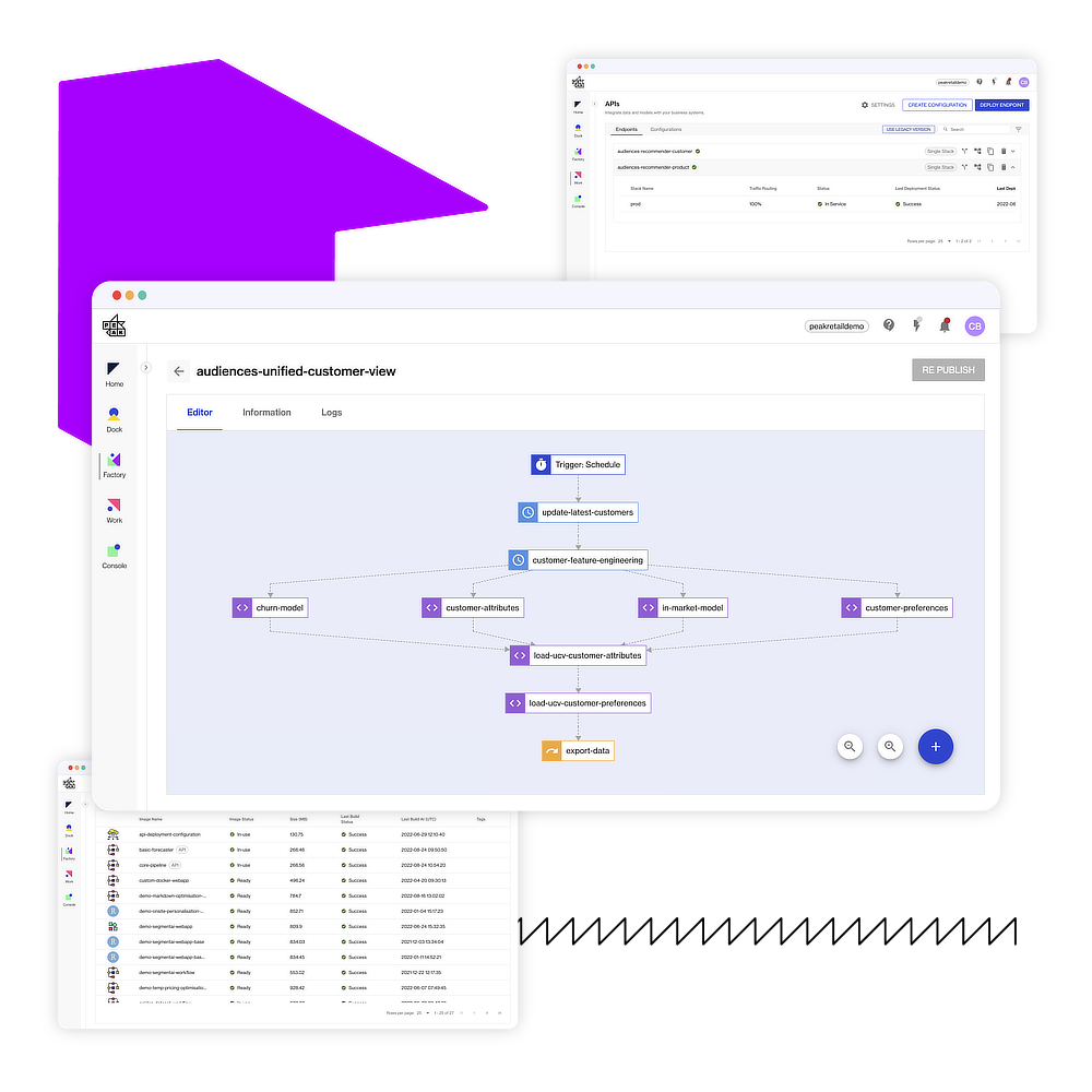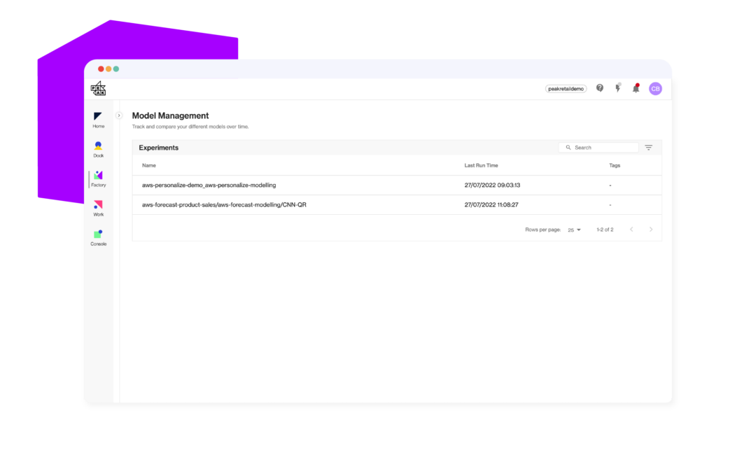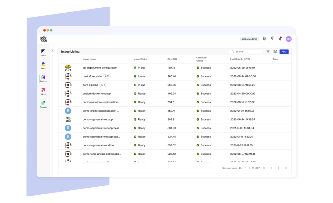 Factory was designed to make it easy for Data Scientists to deploy work and drive outcomes. For a full demo of Factory and the rest of Peak, get in touch today.
